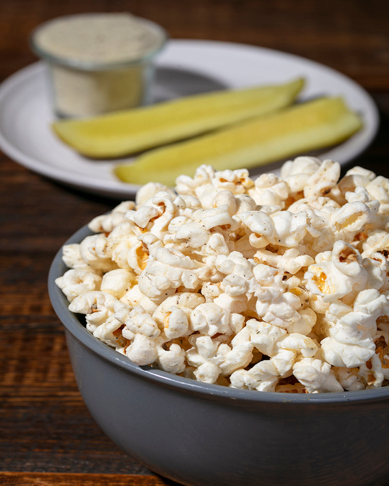 Popcorn, Yellow Cheddar Cheese, Canola Oil, Dill Pickle Popcorn Seasoning (Whey, Sodium Diacetate, Salt, Monosodium Glutamate, Garlic Powder, Citric Acid, Malic Acid, Spice, Onion, Spice Extractive, Less than 2% Silicon Dioxide to prevent caking), Popcorn Seasoning (Cheddar Cheese Powder [Cheddar Cheese (Cultured Milk, Salt, Enzymes), Whey, Buttermilk, Maltodextrin, Salt, Disodium Phosphate], Buttermilk Powder [Buttermilk Powder, Butter Flavor, Maltodextrin, Whole Milk Powder, Citric Acid, Salt], Butter Powder [Whey, Butter, Maltodextrin, Salt, Guar Gum, Annato Color, Turmeric], Asiago & Parmesan Cheese Powder [Whey, Maltodextrin, Buttermilk, Parmesan Cheese Flavor, Asiago cheese Flavor, Salt], Onion, Black Pepper, Garlic, Lactic Acid, And Less Than 2% Soybean Oil & Silicon Dioxide (Anti-caking)), Seasoning (salt, artificial flavor, and FD&C yellows #5 and #6), Sea Salt. Contains: Milk